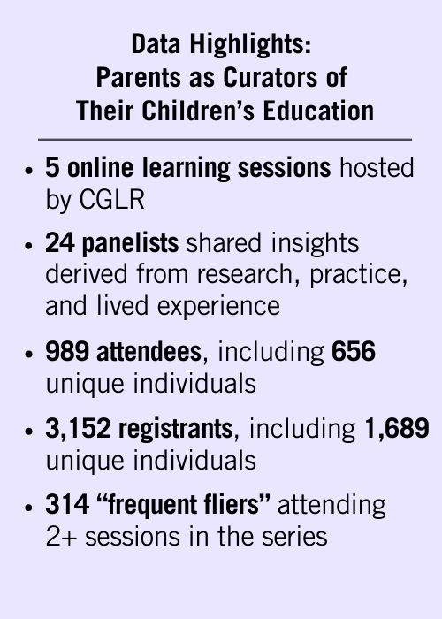 - Parents as Curators of Their Children’s Education: Balancing Choice, Equity, and Accountability. The series launched during GLR Week 2025 with a session in which panelists discussed the overall growth and trends of increased parental curation in K–12 education, including through open enrollment, and explored both opportunities as well as concerns that increased curation brings, particularly in relation to issues of equity and accountability.